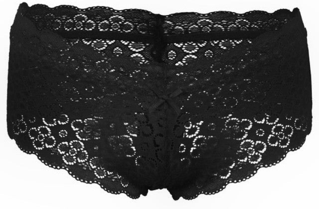 Plus Size Lace Thong Panty Floral Lace Opening Center Bow Detail Elastic Waistband 80% Nylon/20% Spandex True to size