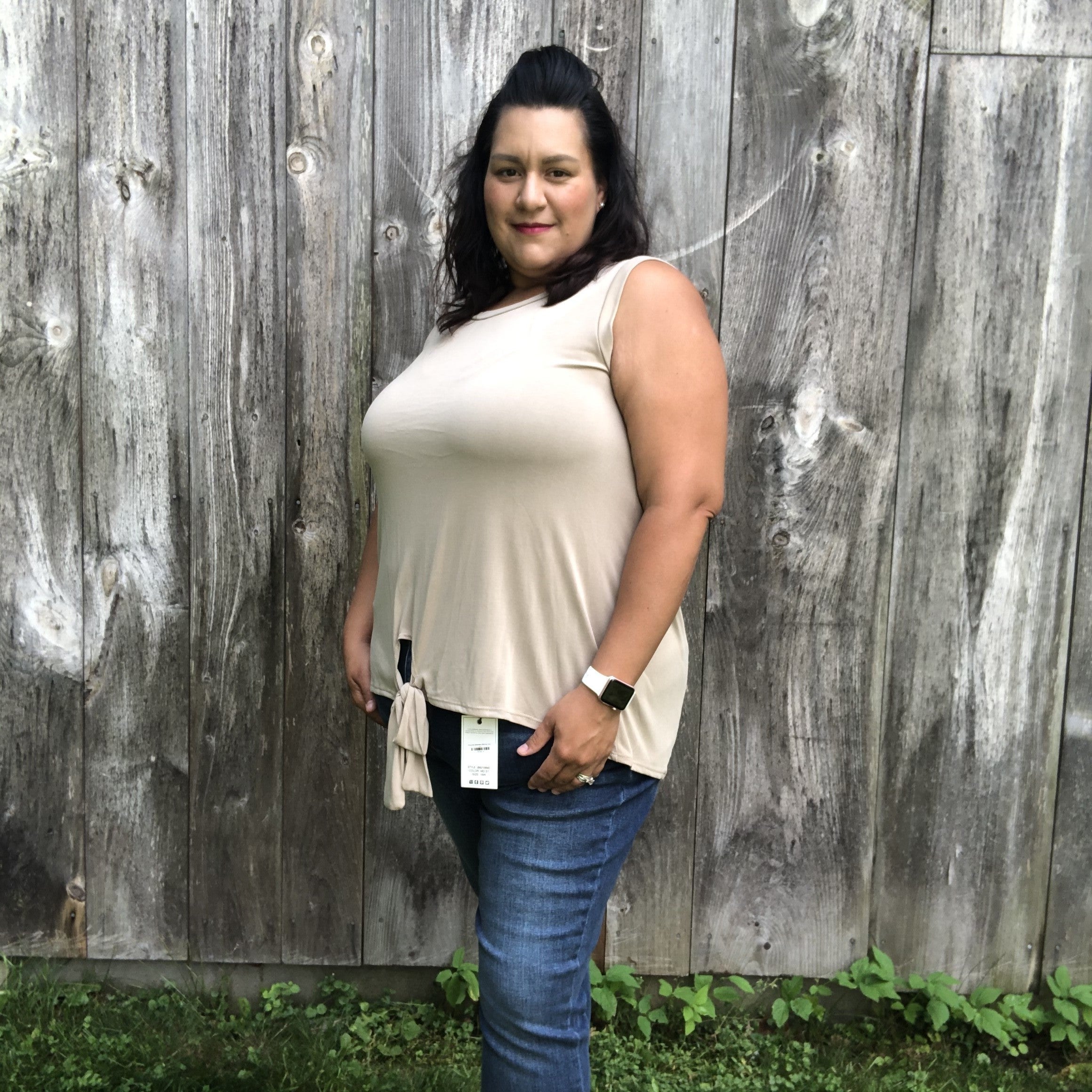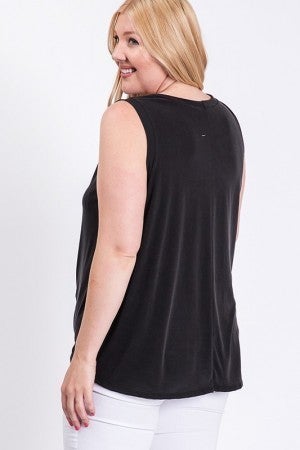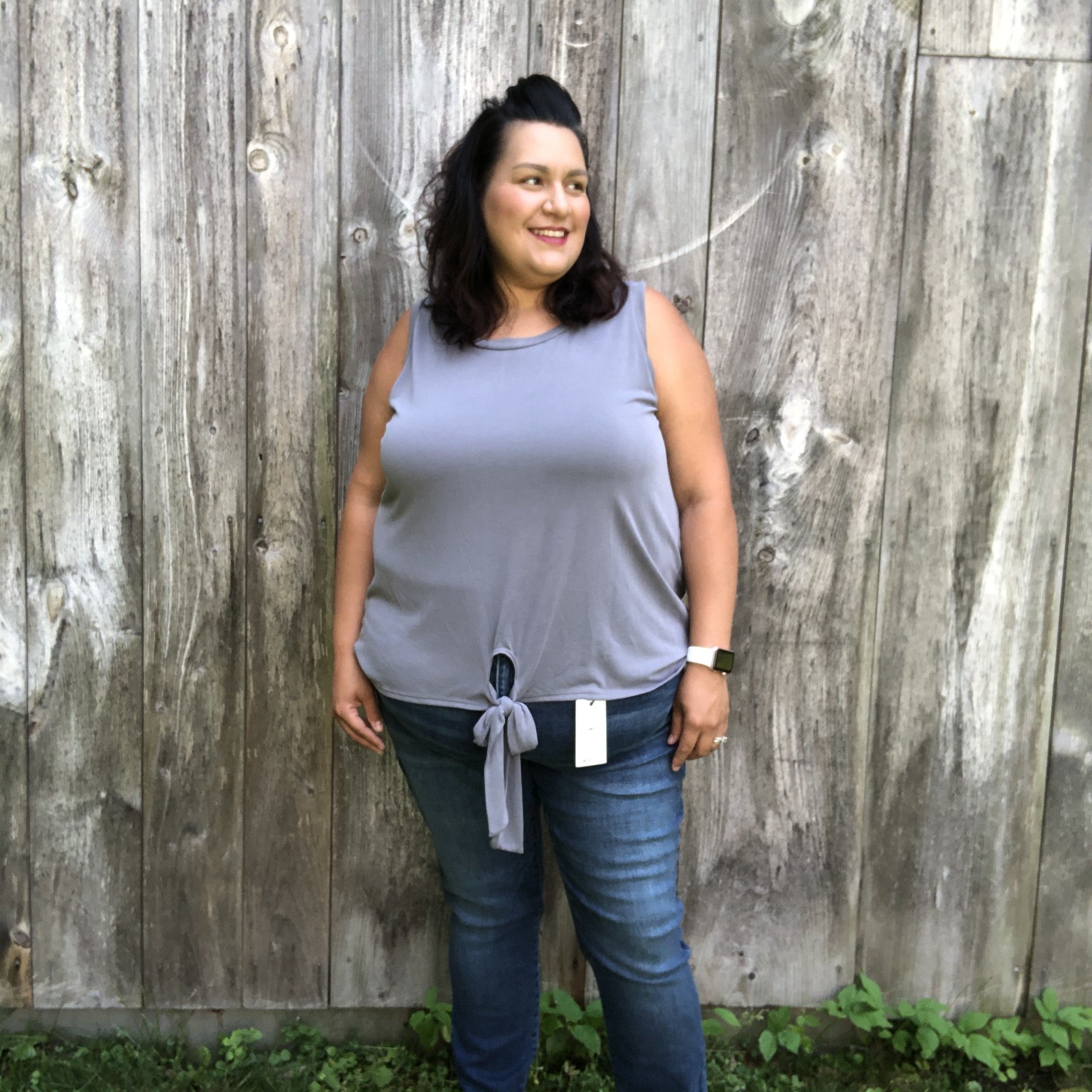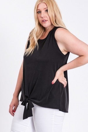 This tank is all about some flare! You will love the simplicity with the tied up hem! Perfect for your fave denim! 95% Rayon, 5% Spandex 1XL 16-18 | 2XL 20-22 | 3XL 24-26