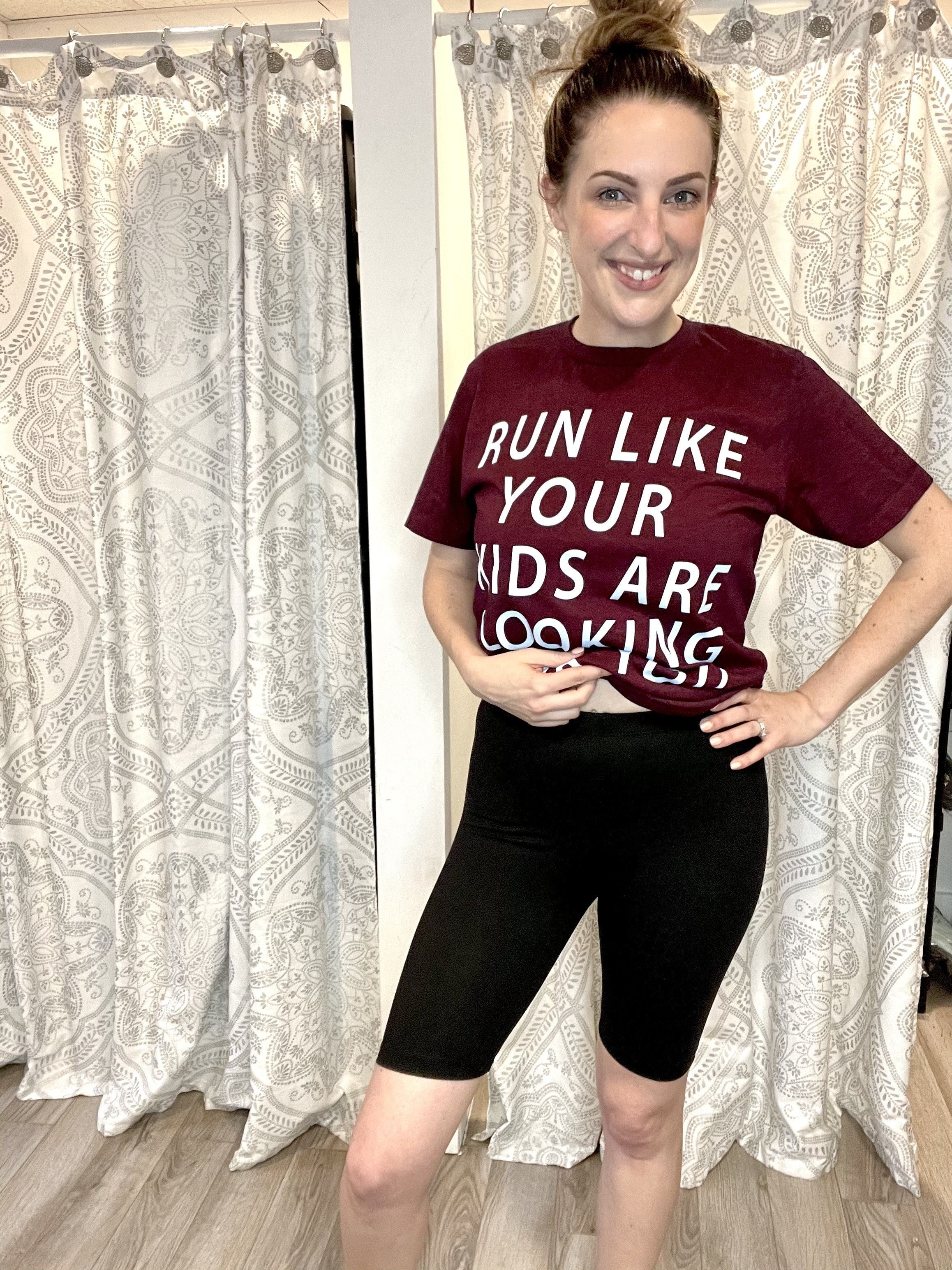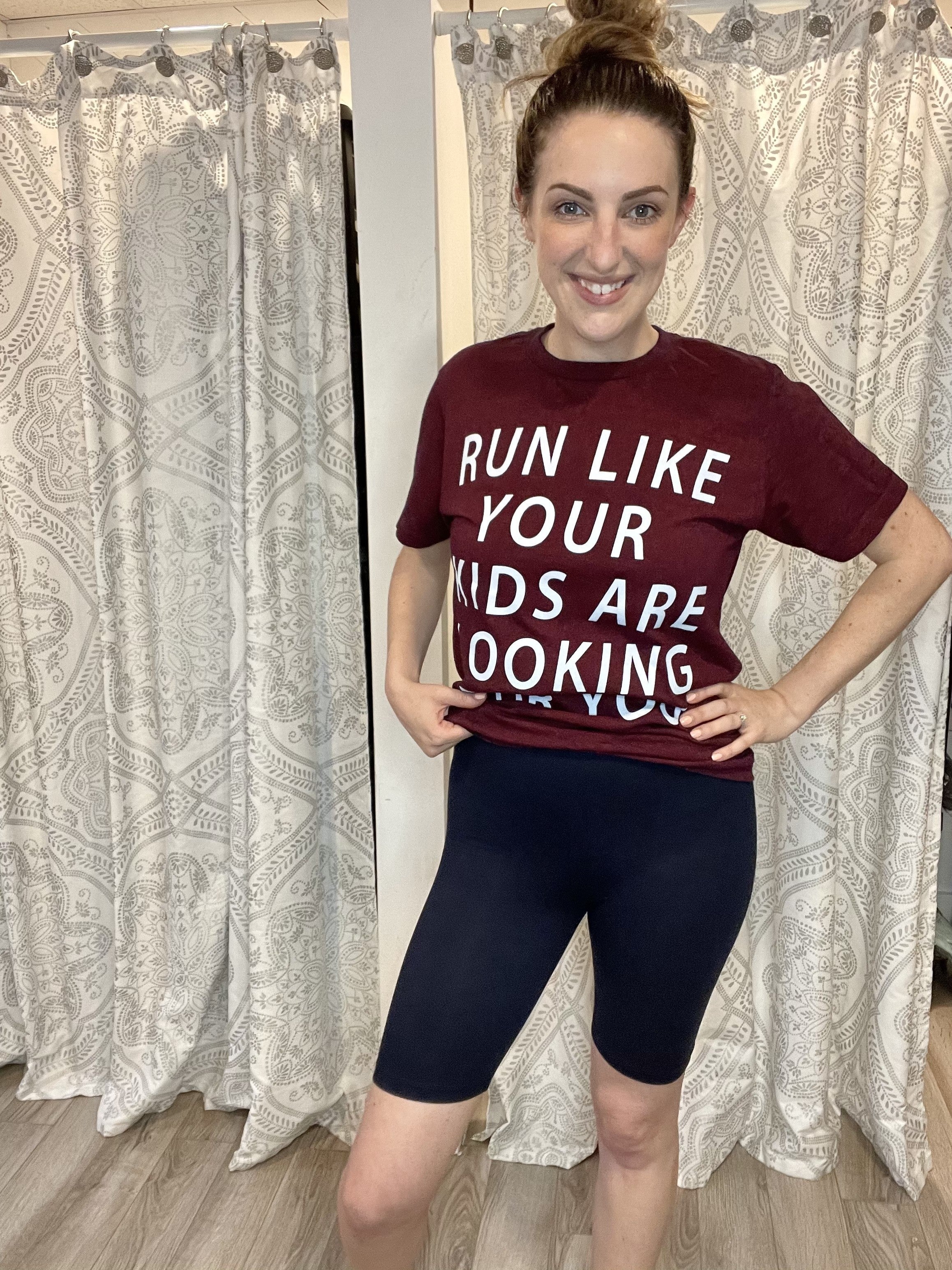 The stretch in these shorts is epic! These are comfy, stretchy biker shorts with a mid-rise. Pair with a graphic tee for a casual comfy look.