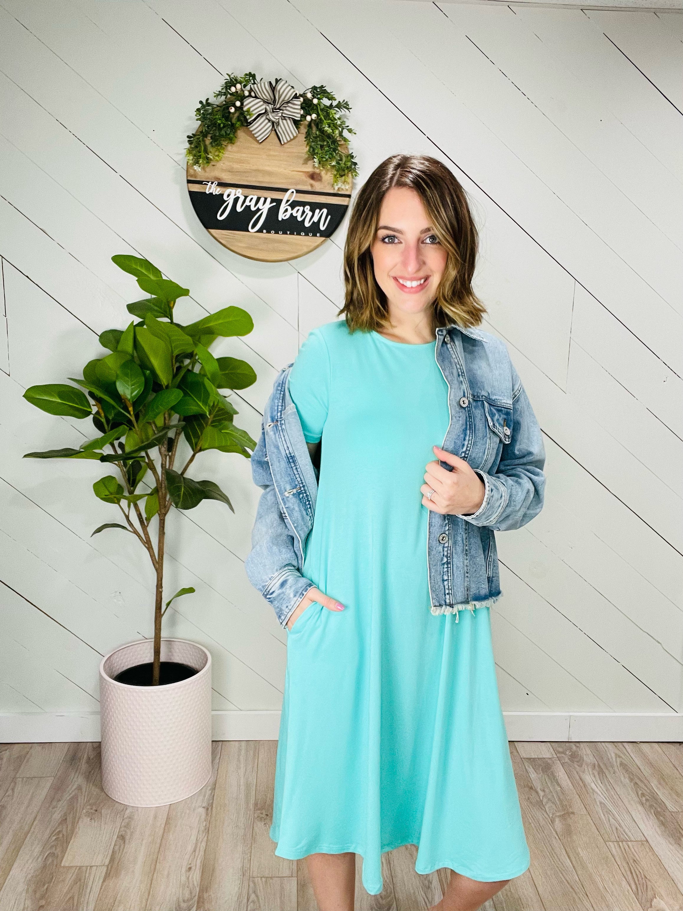 The Perfect T-Shirt Dress w/ Pockets in Mint