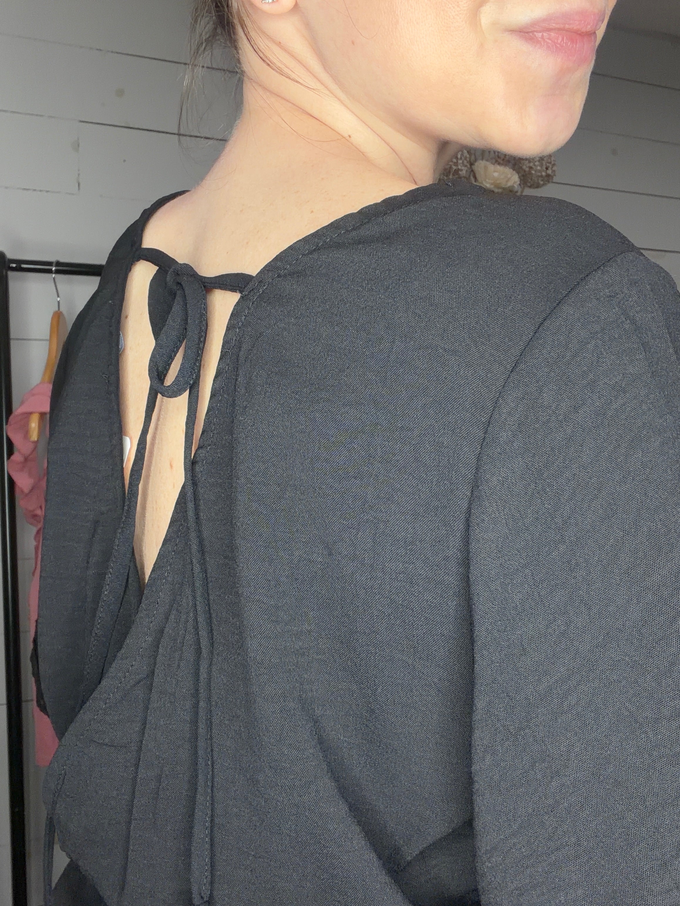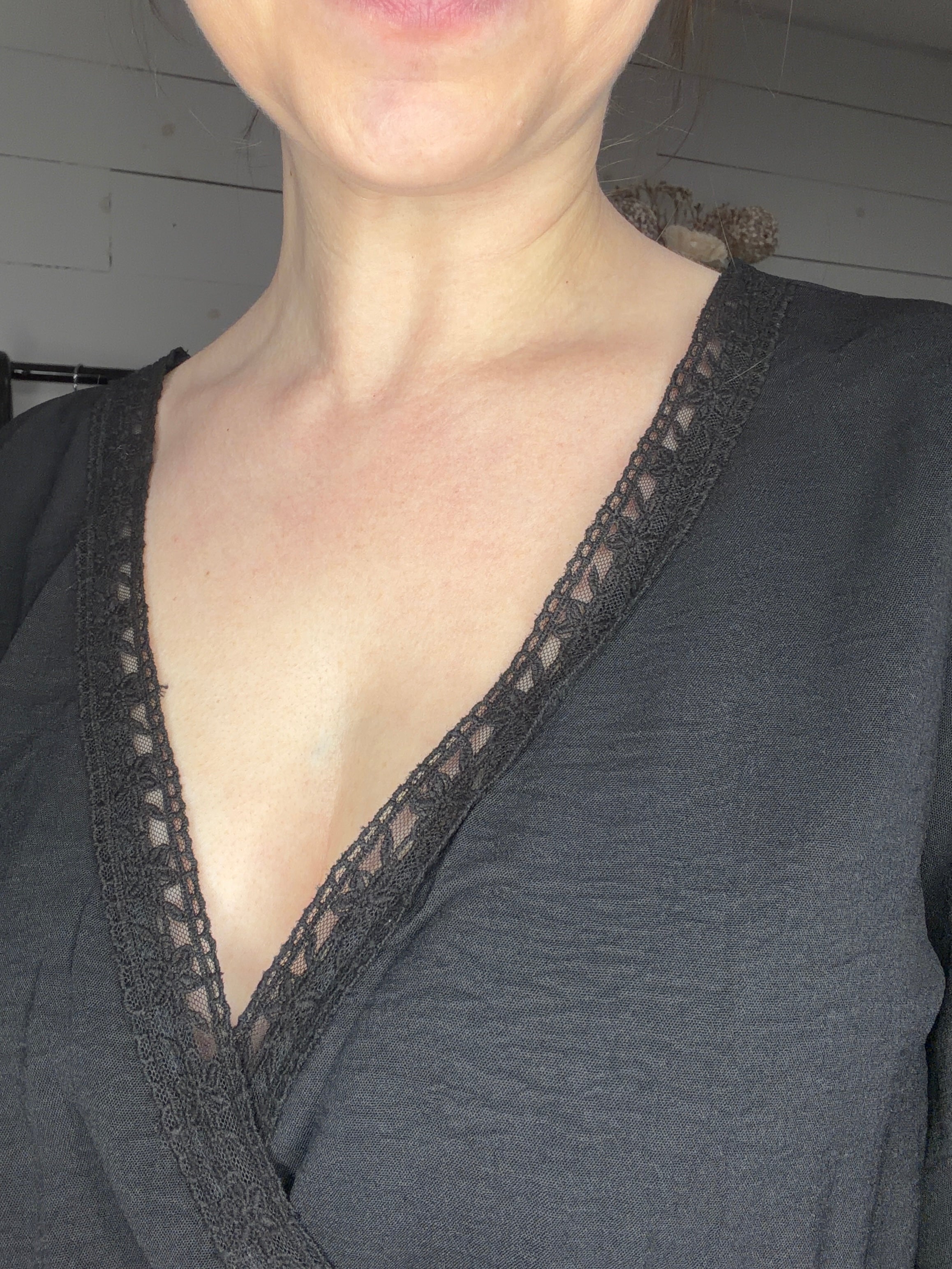 - lace detailed crossover V neckline