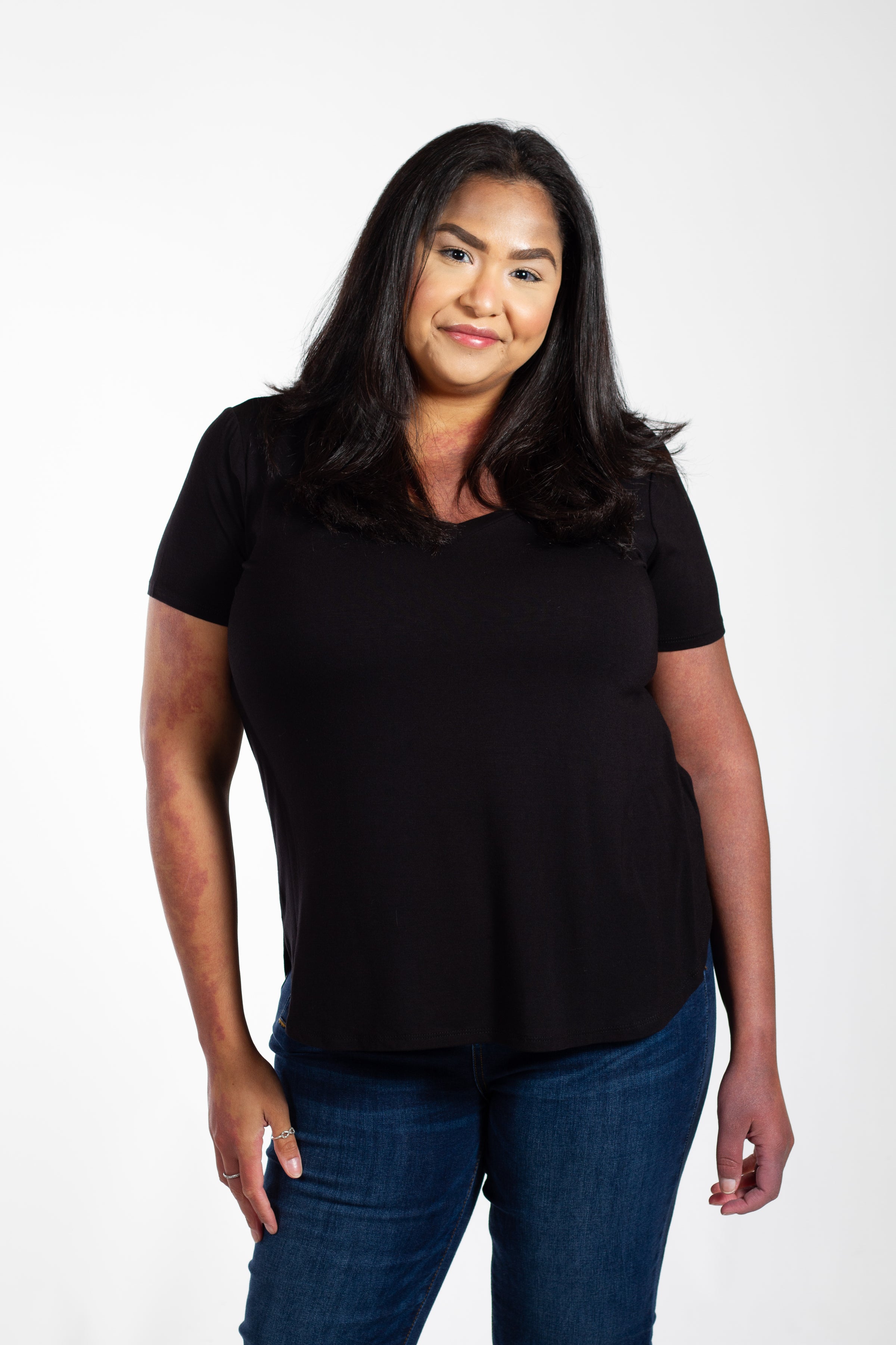 A lightweight casual T shirt that will pair with everything. This top is long enough to cover all of your assets whether in leggings or denim.