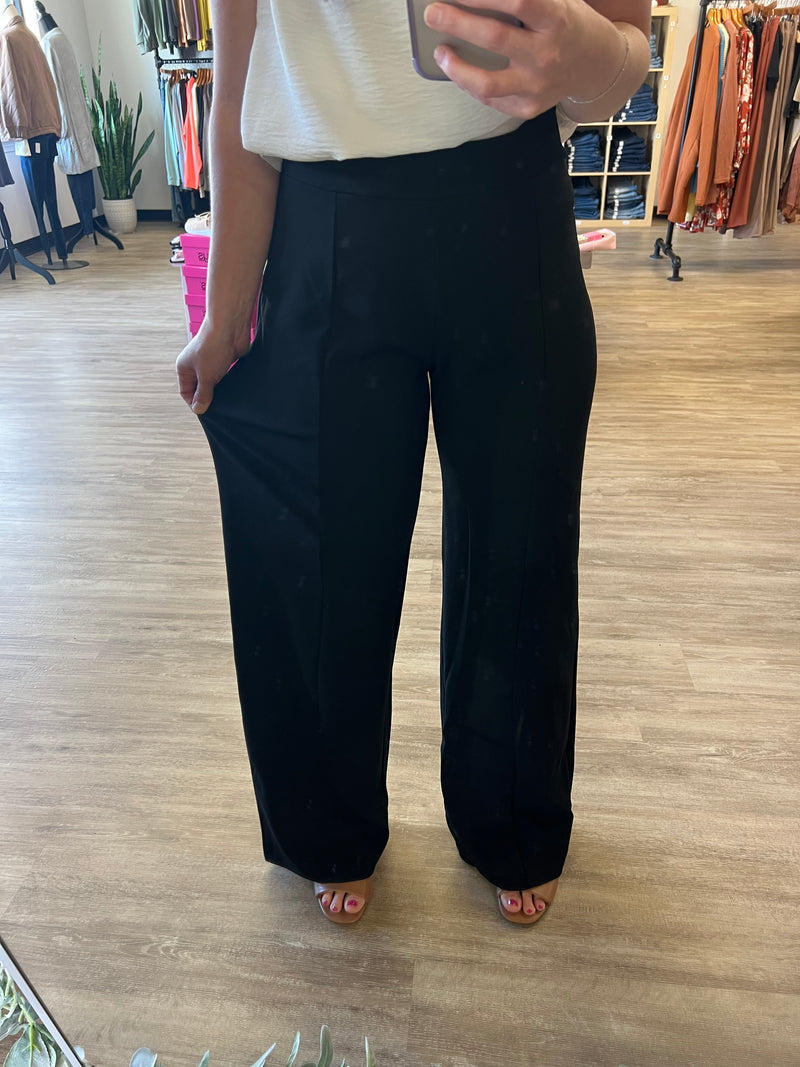 A comfortable pair of wide leg pants that will become a staple in your dressy wardrobe.